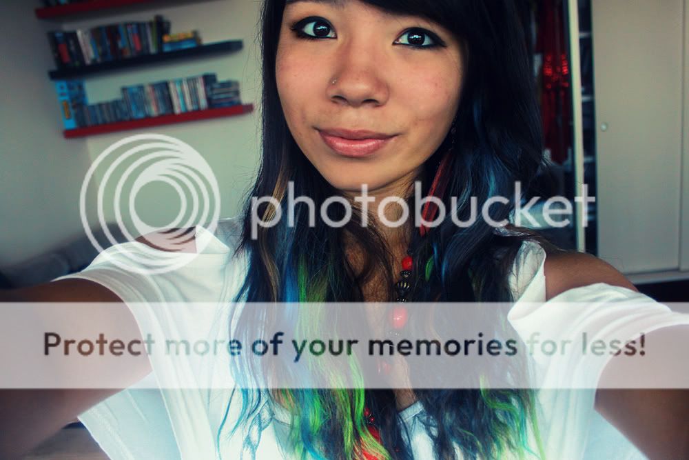 Old (favourite) top. New necklace, new earrings, some new bracelets. Old fly-looking sunglasses, (I need new ones.) Freshly dyed hair. Not pictured: new jean shorts and the comfiest fucking things ever, even if they do keep bloody riding up a bit.